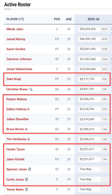 纳吉最高818万!掘金球员的总薪资约为2600万 还不到恩比德的一半
