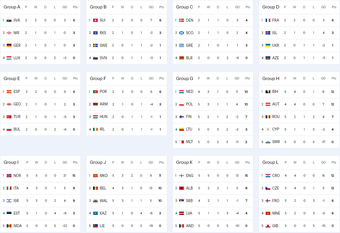 24直播网 北京时间9月10日,2026美加墨世界杯预选赛欧洲区的赛事暂告一段落,积分榜情况如下:接下来各队将在10月份中旬的国际比赛日再继续奋战2轮,然后在11月份中旬的国际比赛日...